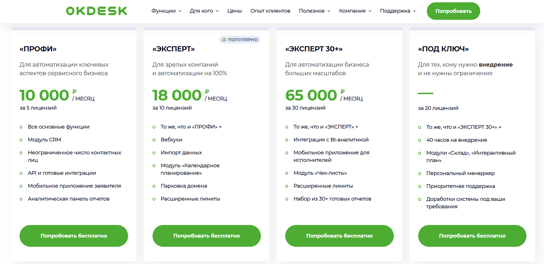 - Нет переплаты за ненужные функции, тарифы можно подбирать по задач